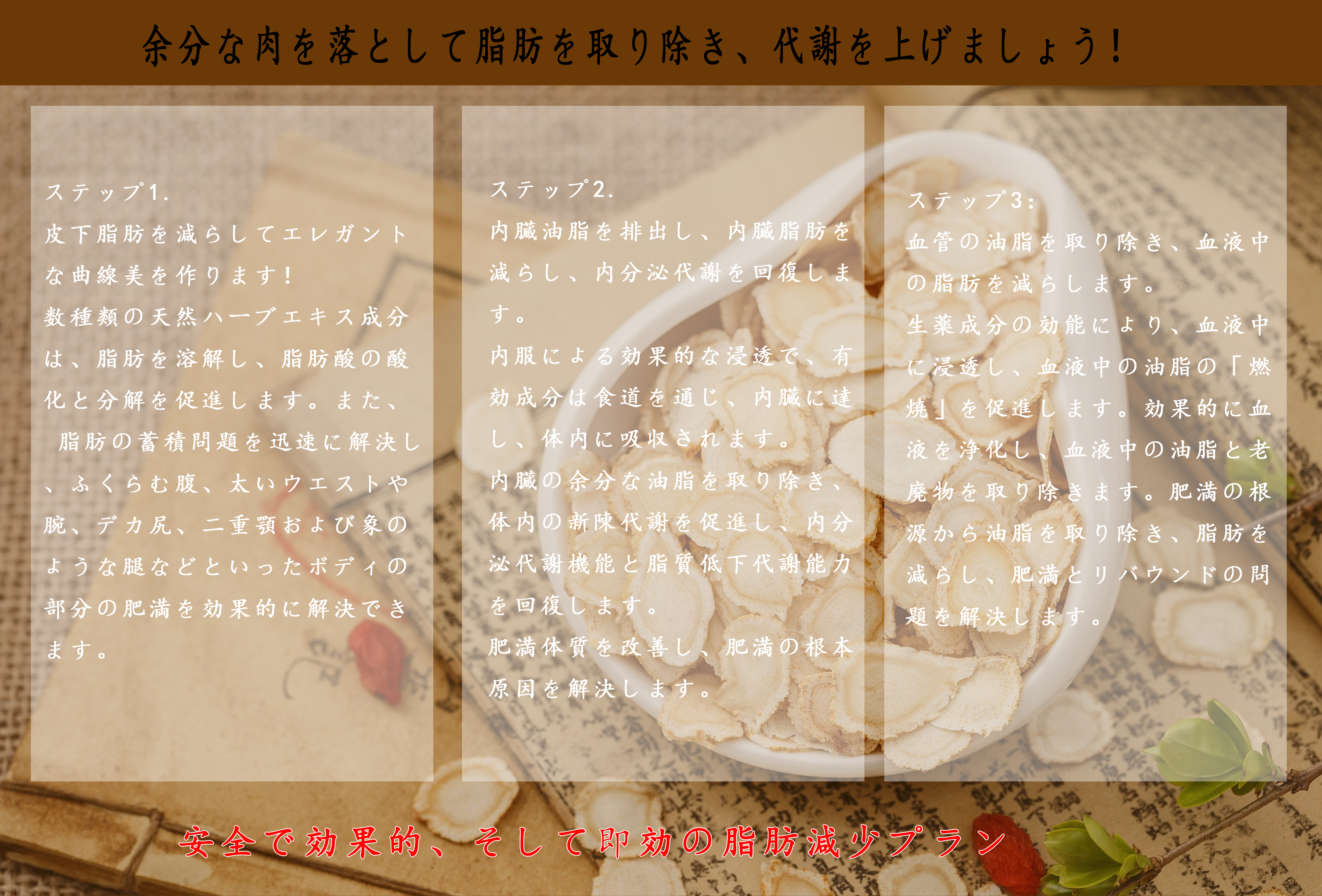 伝統的な漢方知識とこれまでの豊富な経験を生かし、お客様に合ったダイエットプランをカスタマイズいたします。